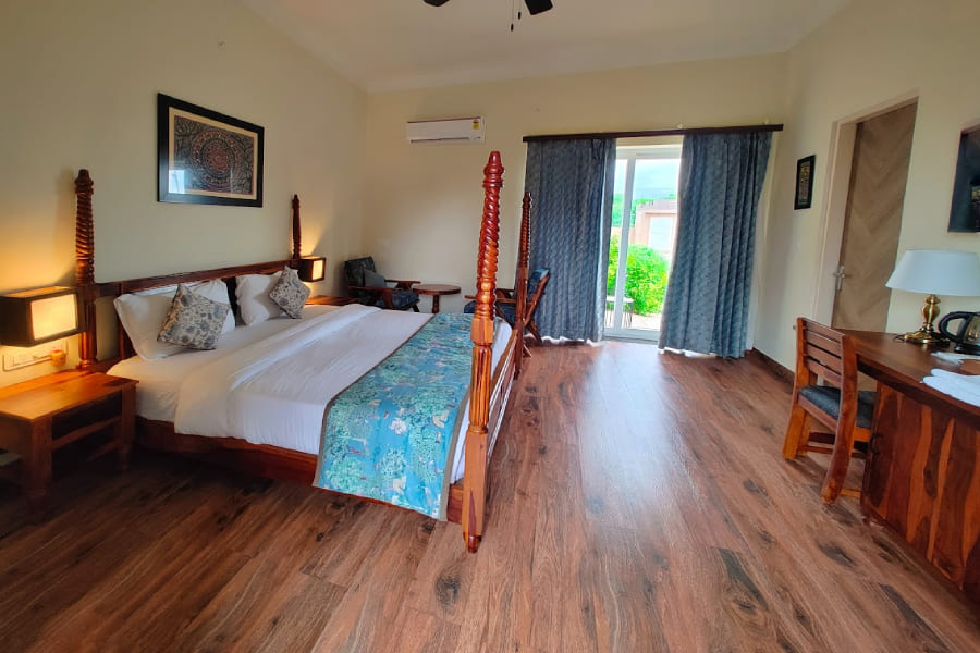 Experience the epitome of luxury in Tiger Retreat's Super Deluxe Room, where opulence meets comfort in the heart of Sawai Madhopur, Rajasthan. Adorned with elegant furnishings and tasteful decor, the room offers a lavish retreat after a day of adventure. Relax in style amidst modern amenities and traditional Rajasthani charm, ensuring a memorable stay. Enjoy panoramic views of the surrounding landscapes from the comfort of your spacious accommodation. Immerse yourself in tranquility and serenity, with every detail meticulously crafted to enhance your experience. Whether lounging in plush surroundings or planning your next safari excursion, the Super Deluxe Room promises an unparalleled level of indulgence and relaxation for discerning travelers.